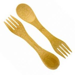 2 IN 1 flatware, fork, spoon could meet all your needs. The environmental bamboo material is durable, lightweight. Designed to suit adults and kids. Suitable for for camping, family picnic, travel, hiking, BBQ or other outdoor activities. Portable that you can put it in your pocket, bags, backpack. Logo laser engraved on the handle part. Tips: nature material handmade, each unit will have different textures and colors.